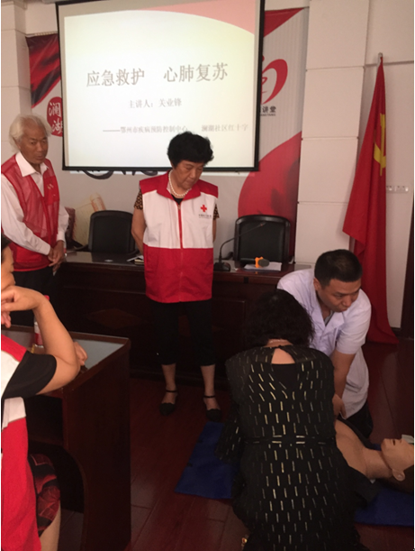 为加强社区居民心肺复苏急救知识教育,提高居民紧急情况自救及互救能力。7月4日上午,市疾控中心依托道德讲堂活动在澜湖社区二楼会议室开展“党员进社区 心肺复苏急救知识讲座”活动。