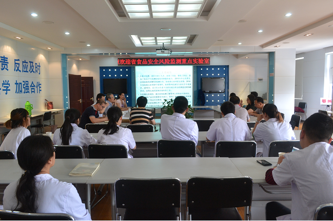 中心副主任杨爱莲从领导机制、队伍建设、人才引进、仪器设备、科研能力等方面汇报了中心实验室近年来的变化,以及食品安全风险监测能力提升的过程。中心主任伍建胜对相关内容做了进一步的补充说明。