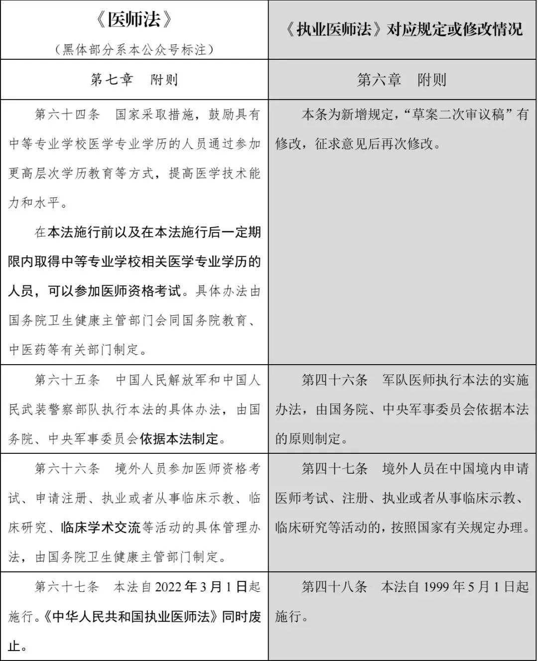 本文以新颁布的《医师法》为基础,逐条对照《执业医师法》相关规定,对修改的法条进行了全面梳理。